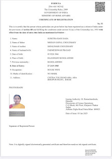 यह बिहार राज्य में नागरिकता संशोधन अधिनियम, 2019 (सीएए) के तहत जारी प्रथम प्रमाण पत्र है।